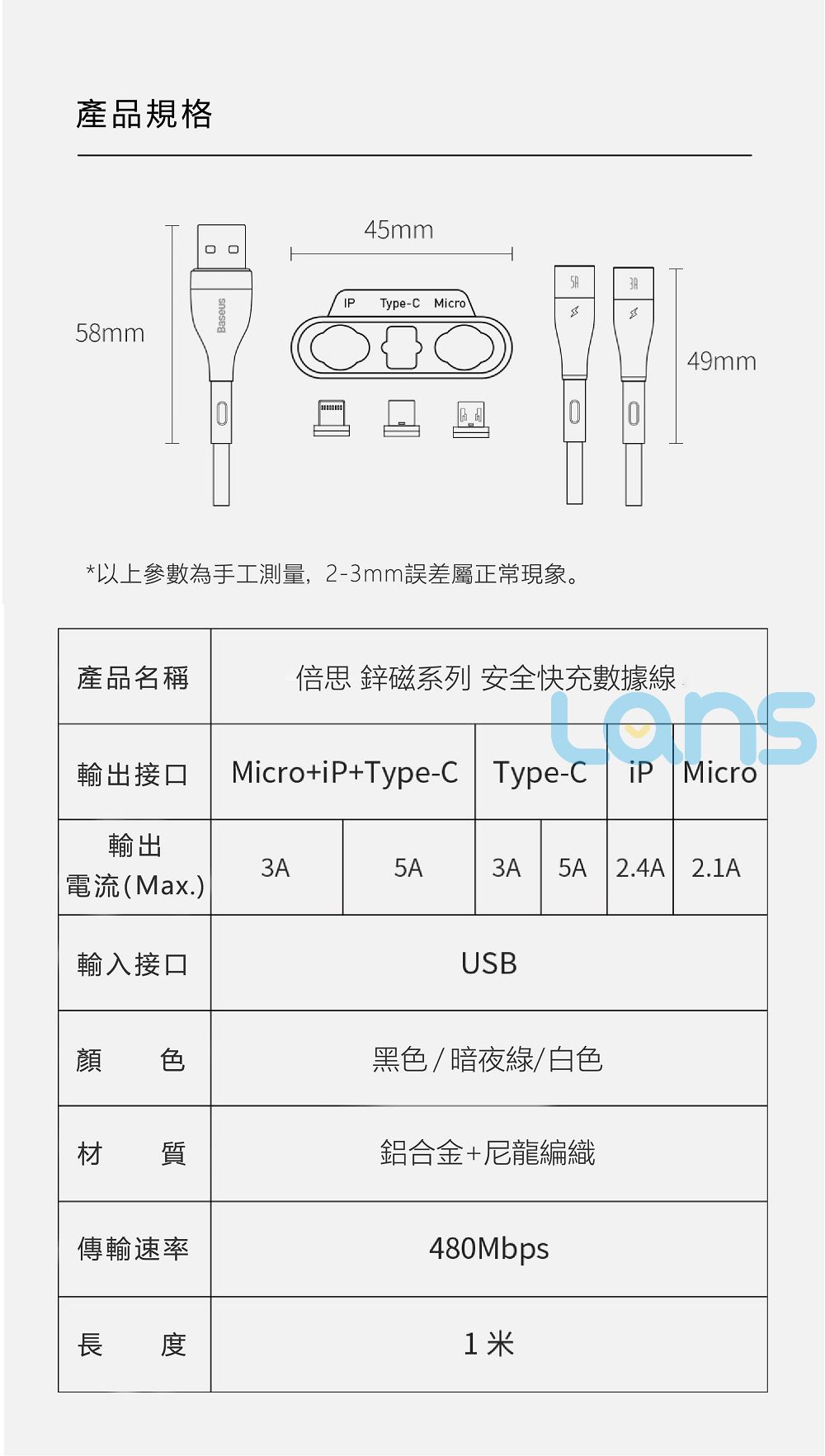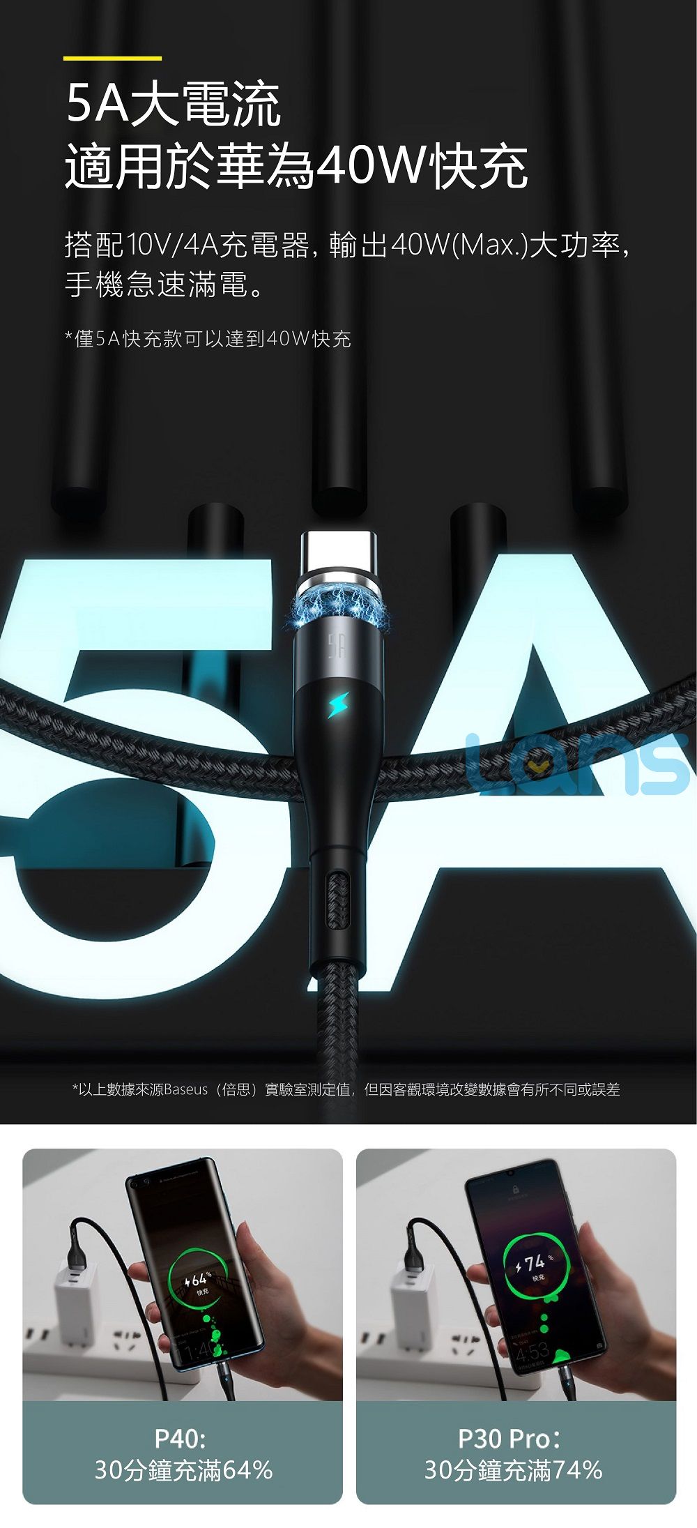 Baseus倍思 鋅磁系列 安全快充 TypeC/Lightning/Micro 快充線 磁吸充電線