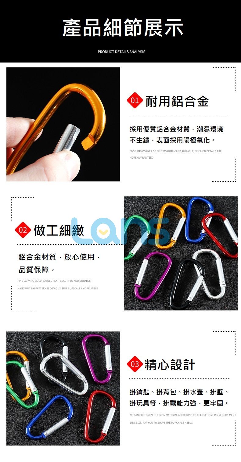 8號D型半扁帶鎖掛扣 鋁合金掛扣 登山扣 掛勾 掛腰扣環 腰掛扣環 水壺扣環 登山扣環