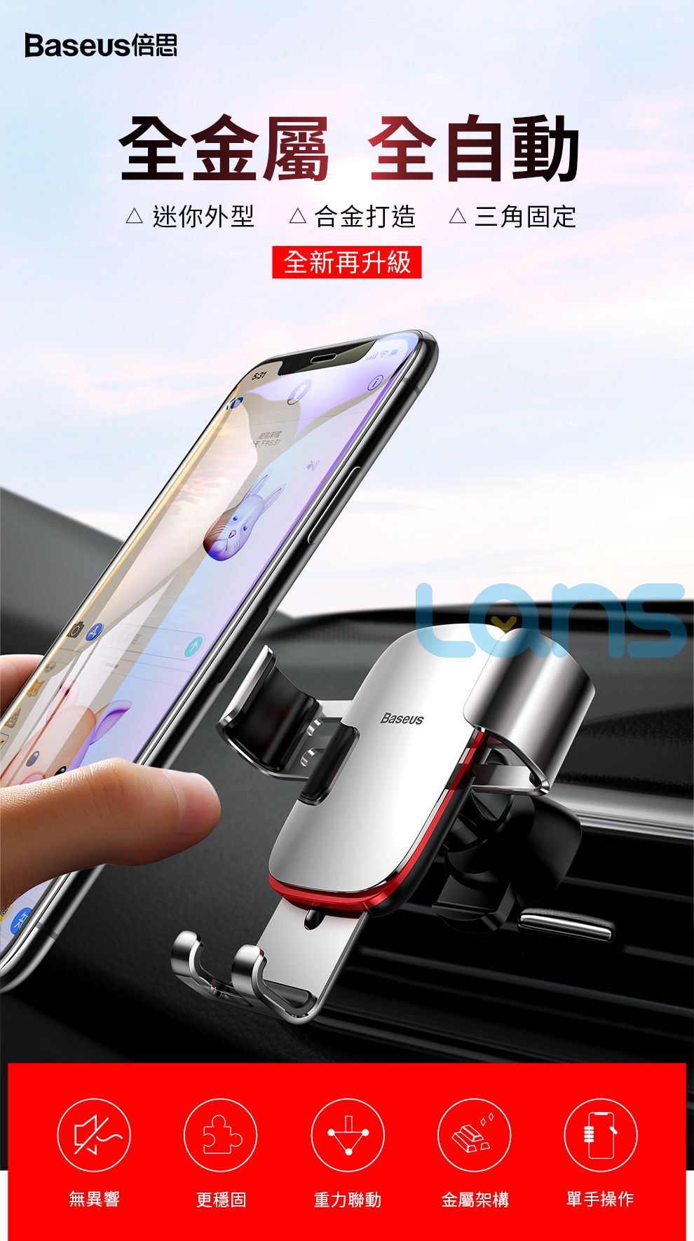 Baseus 倍思 金屬時代三角重力感應車用出風口手機支架 4-6吋手機適用 銀色 1個
