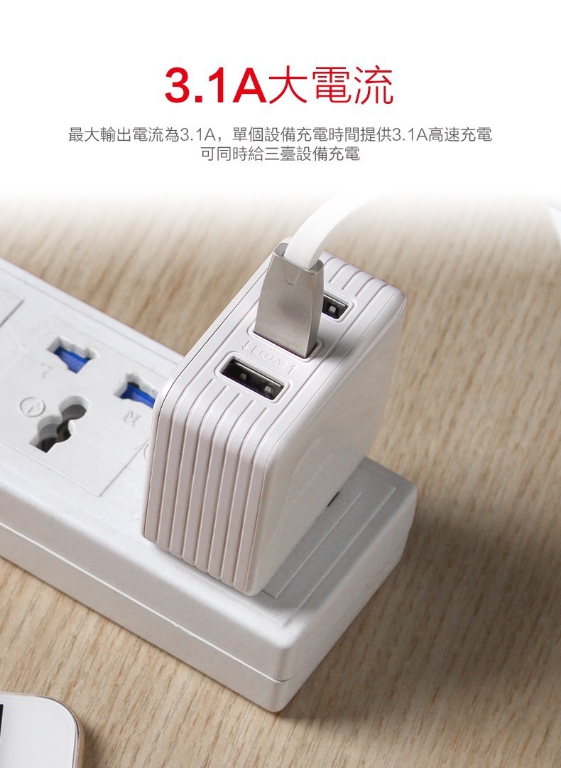 【聖岡科技Dr.AV】USB-533極速3 USB快充3.1A充電器(自動辨識iPhone android五大安全保護 國際電壓設計)