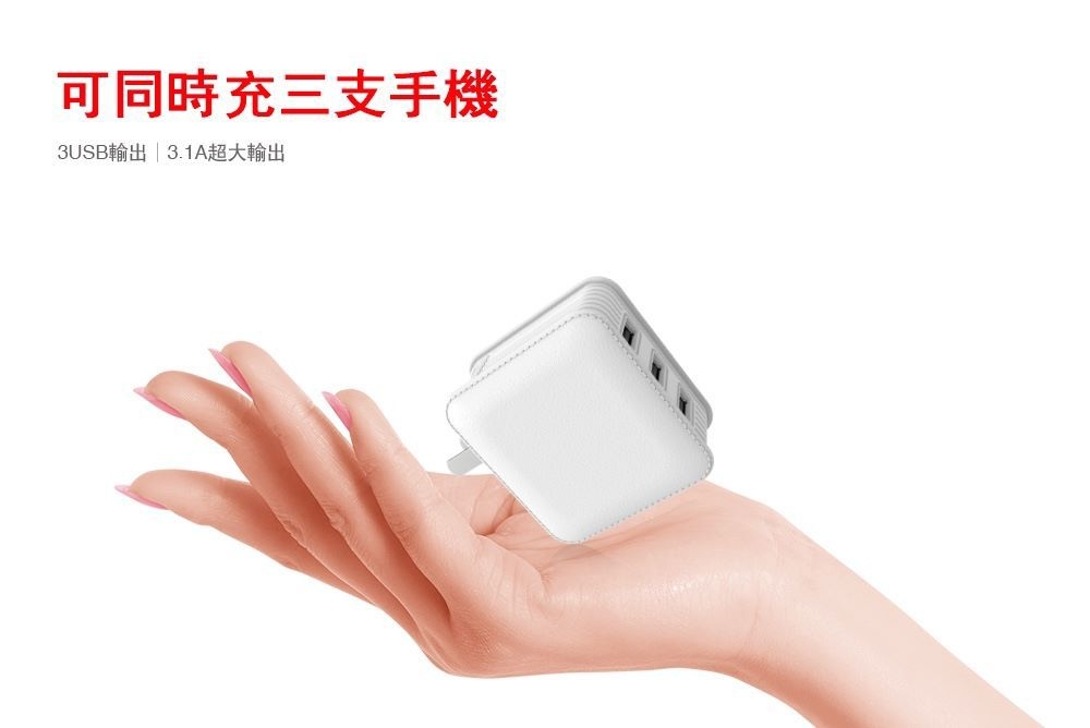 【聖岡科技Dr.AV】USB-533 三孔USB極速3.1A快充 充電器