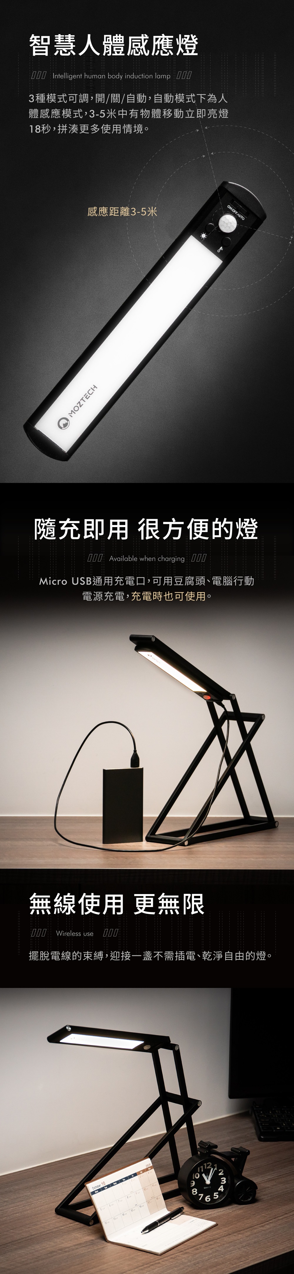 【MOZTECH】BANG!燈 變變燈 多功能支架 LED無線感應燈 檯燈 電腦燈 植物燈 感應燈 【JC科技】