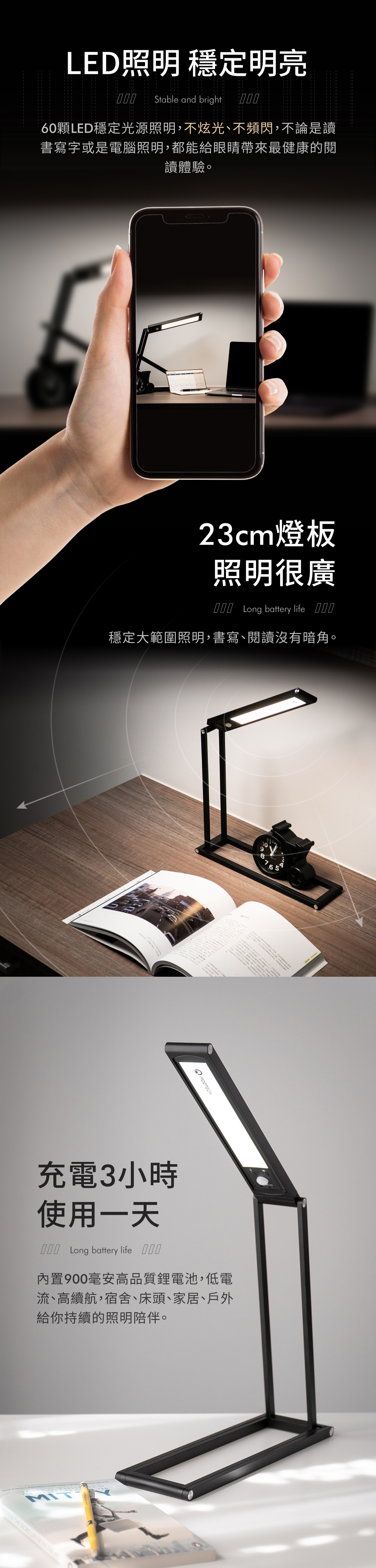 憶光EVERLIGHT億視界智能 AA級護眼LED檯燈/時尚黑/ED02/台