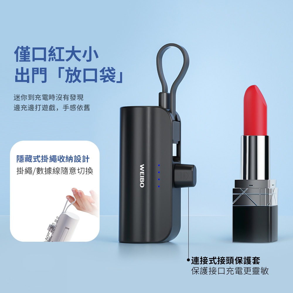 WEIBO 直插式行動電源 5000mAh TYPE-C PHP-137TC 黑色 迷你便攜 安全快充