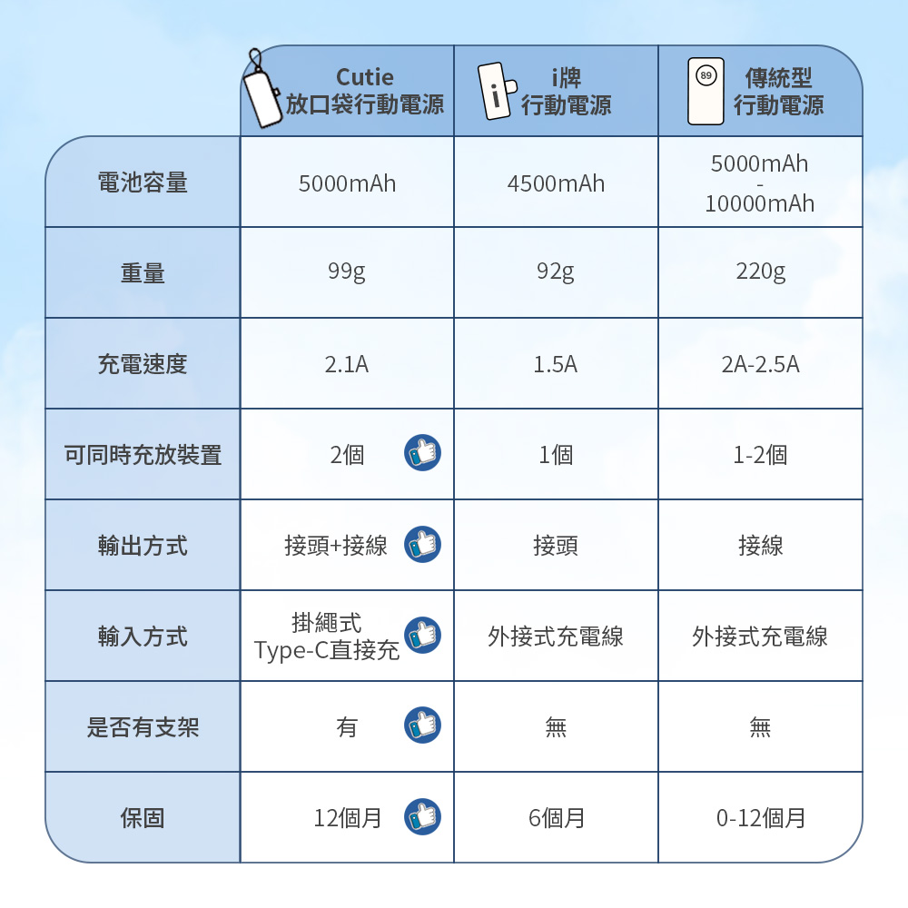 UNICHI 沐尼黑 MR.50 5000mAh 20W 雙孔輸出 口袋行動電源/能量小Q寶(自帶線 手機支架 LED電量顯示) 雲朵白|Lightning