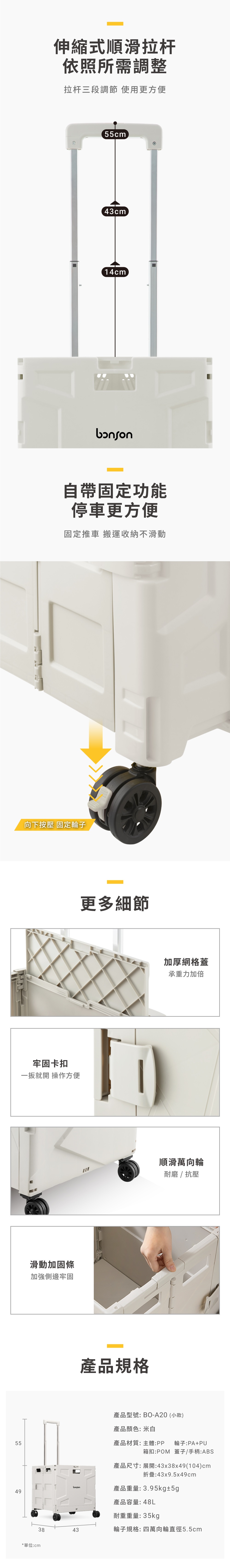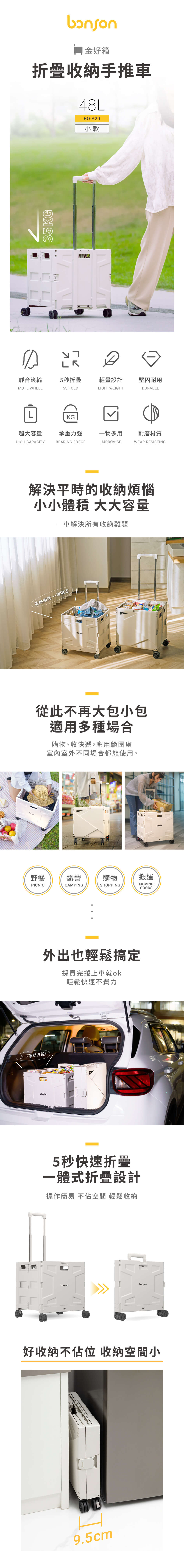 bonson 折疊收納手推車 55L 大款 360度萬向輪 最高承受60公斤 BO-A19 (適用購物/野餐/露營)