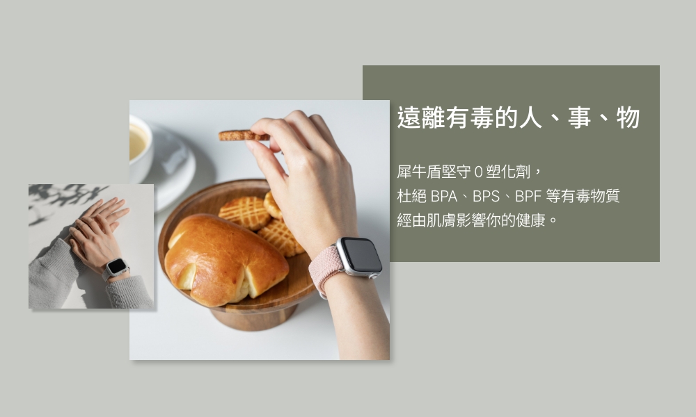 A5:犀牛盾Apple watch編織錶帶的產品中不含雙酚A/F/S塑料常用的化學物質。