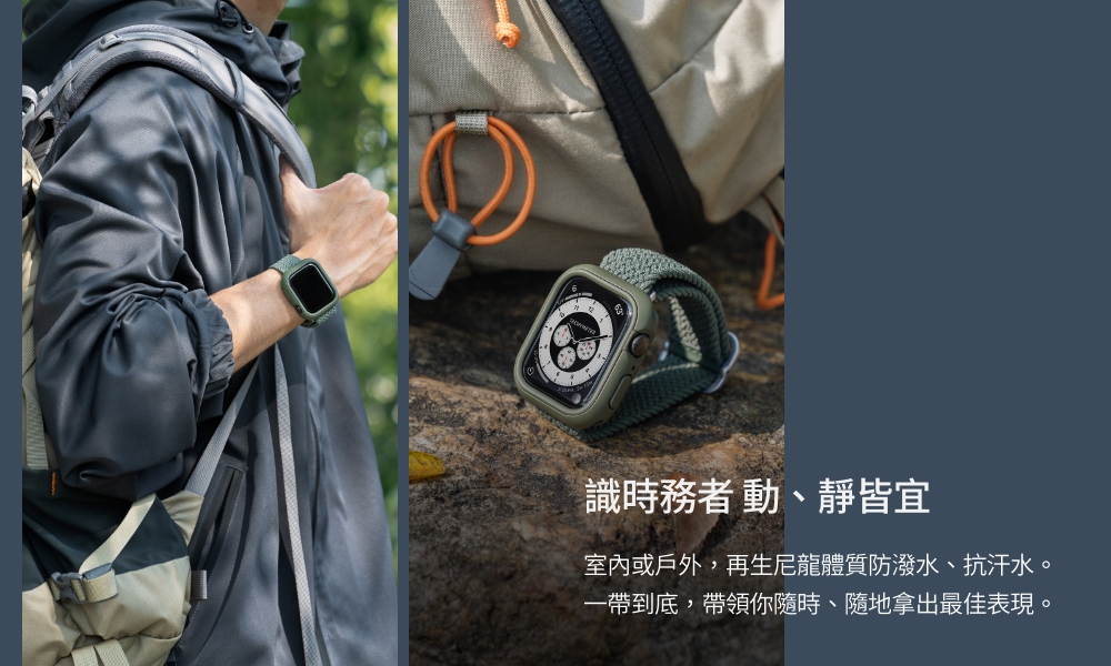 A3:犀牛盾 Apple Watch 編織錶帶本身具有防潑水的特性,此特性會依據個人使用情況而有所差異,建議可以快速甩動錶帶去除表面的水滴,或是使用乾淨的布面擦拭即可保持乾爽。