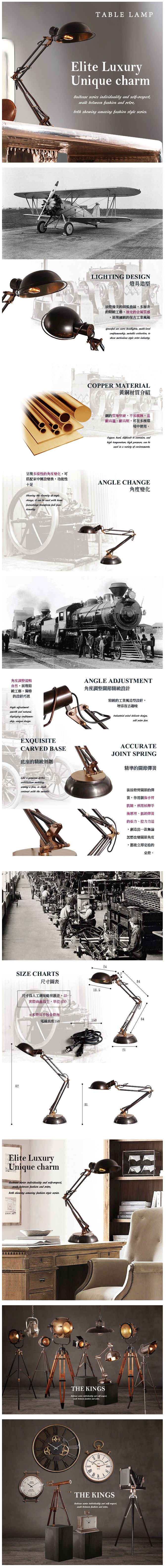 工業年代復古氛圍漂移與一個有吸引力的【THE KINGS】Socrates蘇格拉底復古工業檯燈,設計和工業(Createurs et Industriels)概念的一個中心表滲出復古氛圍,不以花俏誇張的外型作賣點,復古的氣質反而經久耐用,黃銅(Brass Table Lamp 2 Tone Antique)復古工藝考究而獨特,更具個性、更有態度的老黃銅色,復古卻耀眼、華麗又個性,純手工製作兩種色調的復古情懷,呈現斑駁藝術價值,以當代新視角重新詮釋。平衡環境工業風格,底部精製刻劃,與黃銅質感成仿古的自然風格,宛如手臂肌腱般,精準的關節彈簧,槓桿平衡原理,角度調整自如,復古工藝衍生出沈穩悠閒的生活品味,當代的低調奢華新潮流。
