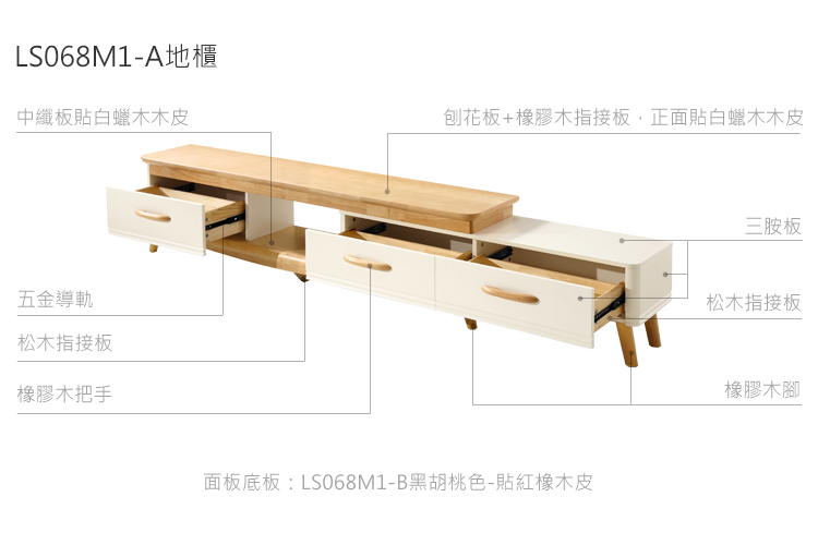 hoi!林氏木業北歐簡約拼色三抽儲物電視櫃2M UT1M