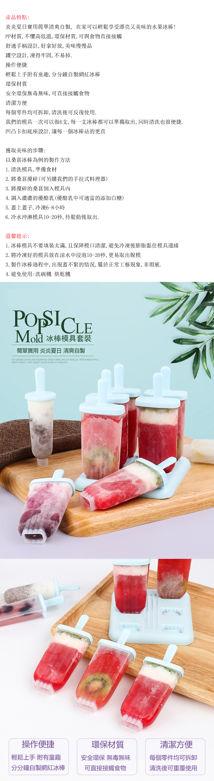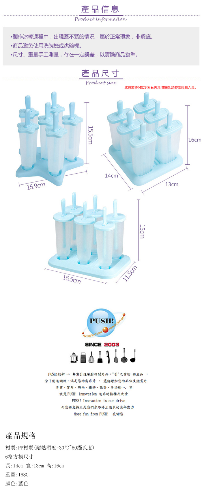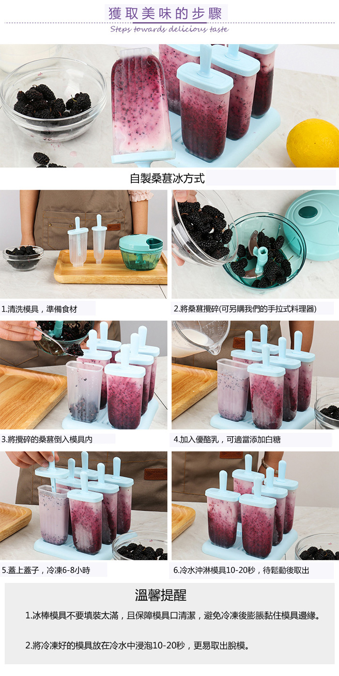 立刻下載PUSH!餐具用品家用DIY自製冰棒模具6格方模D169