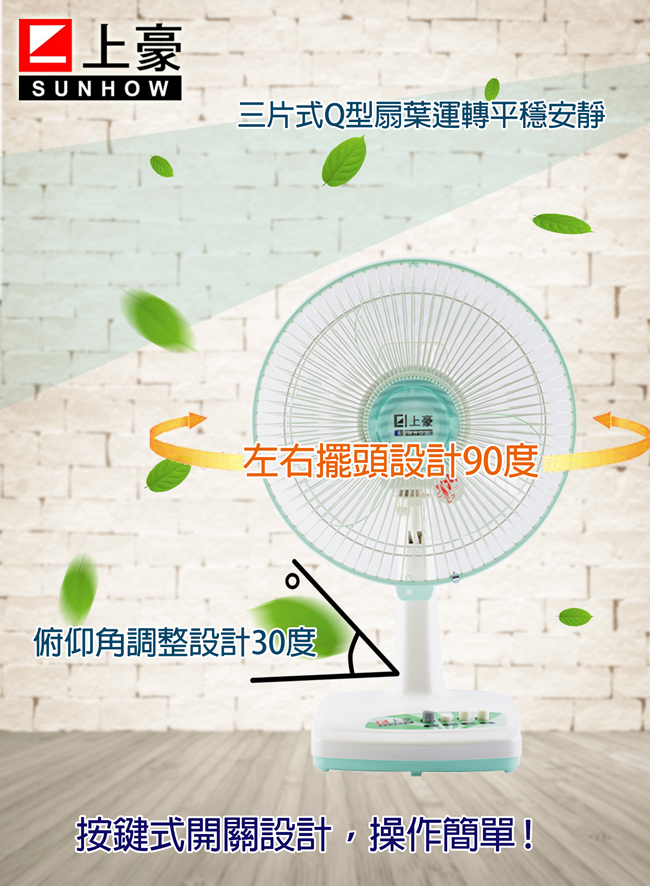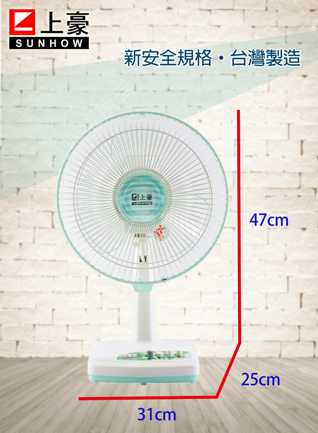✈皇宮電器✿ 上豪按鍵式12吋桌扇FN-1217 特殊靜音馬達轉速快、音量小,新安全規格