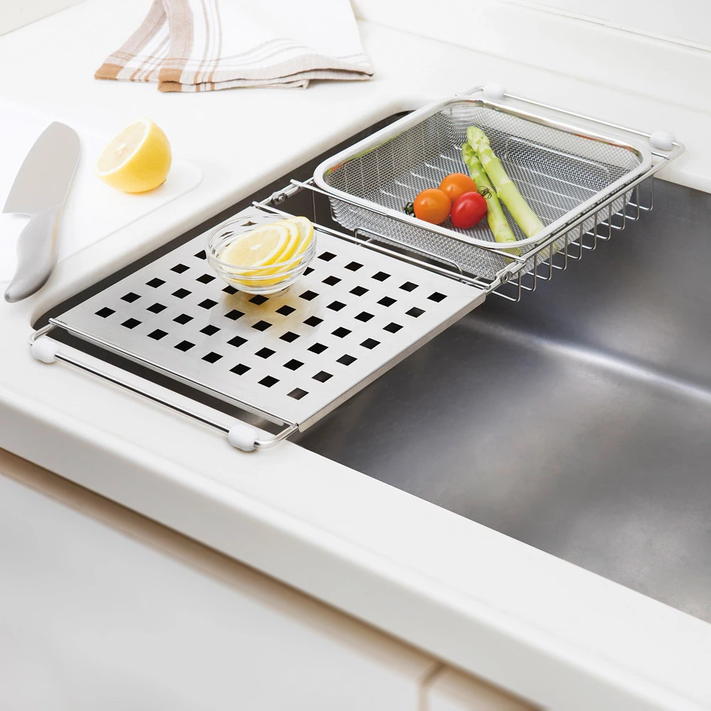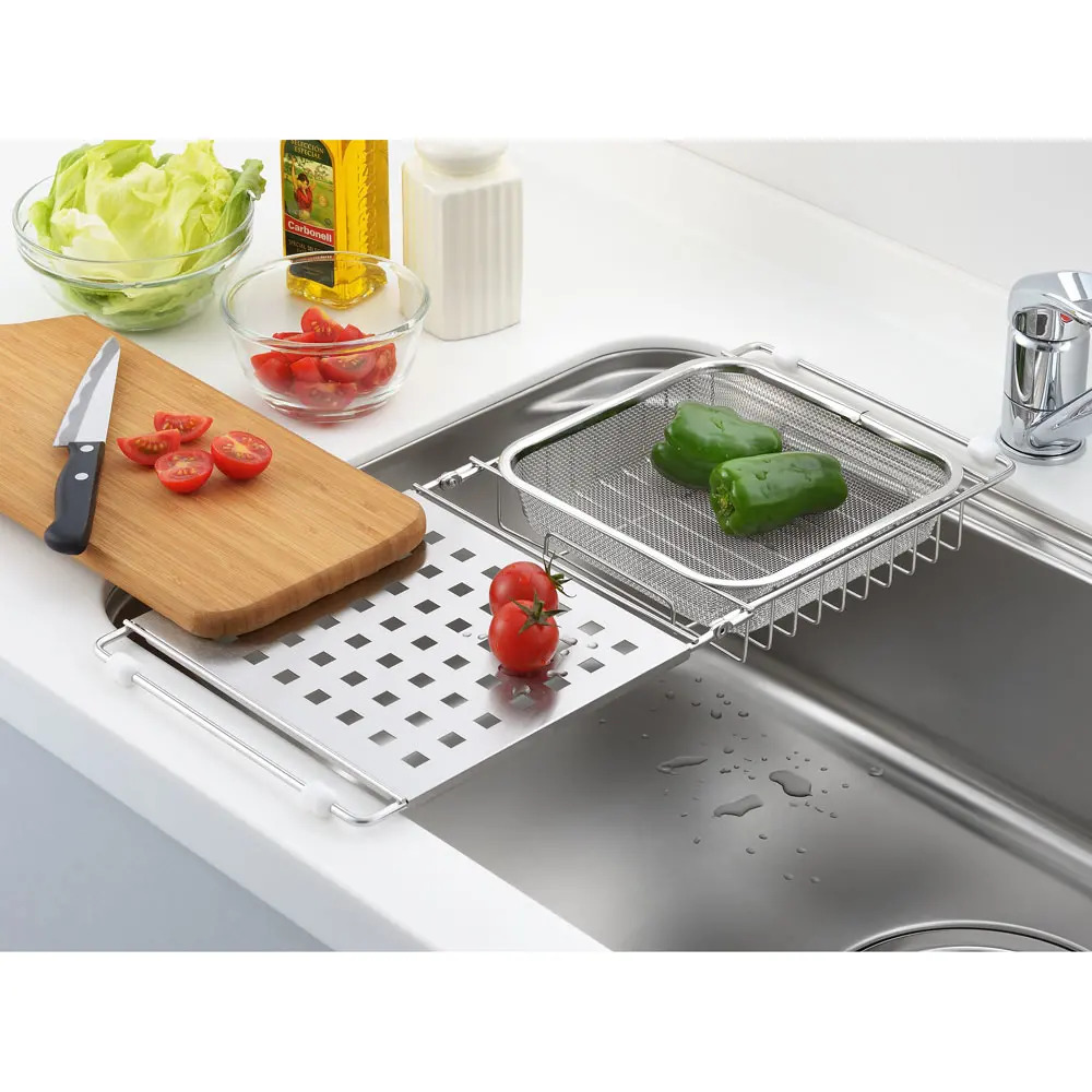濾網還可過濾食材水份,瀝水架還可用來放置洗好的碗盤等。