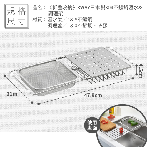 【日本新瀉燕三条】3WAY日本製 304不鏽鋼瀝水/調理架(可折疊收納)