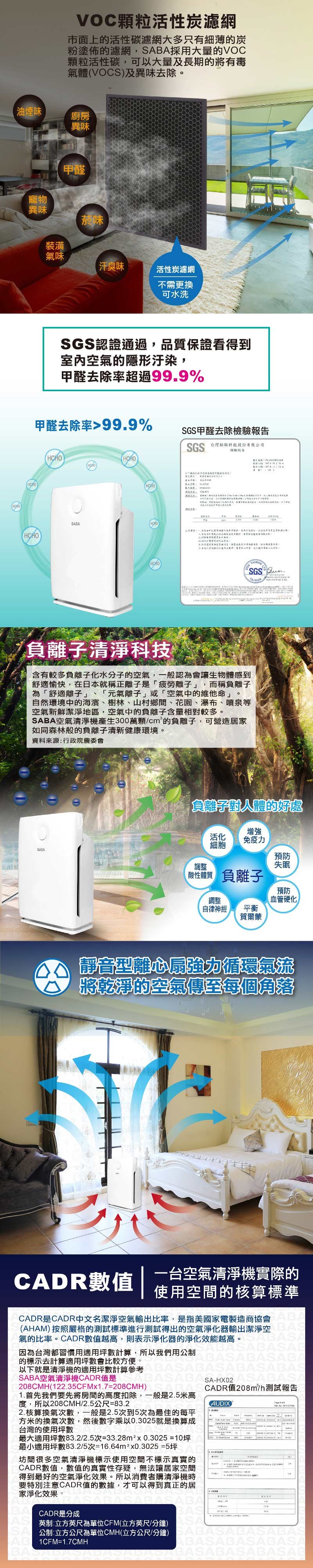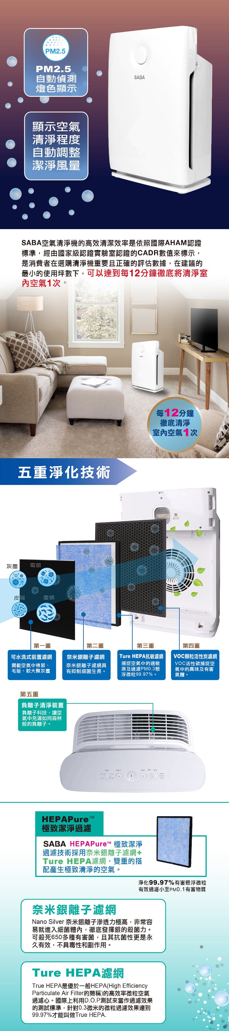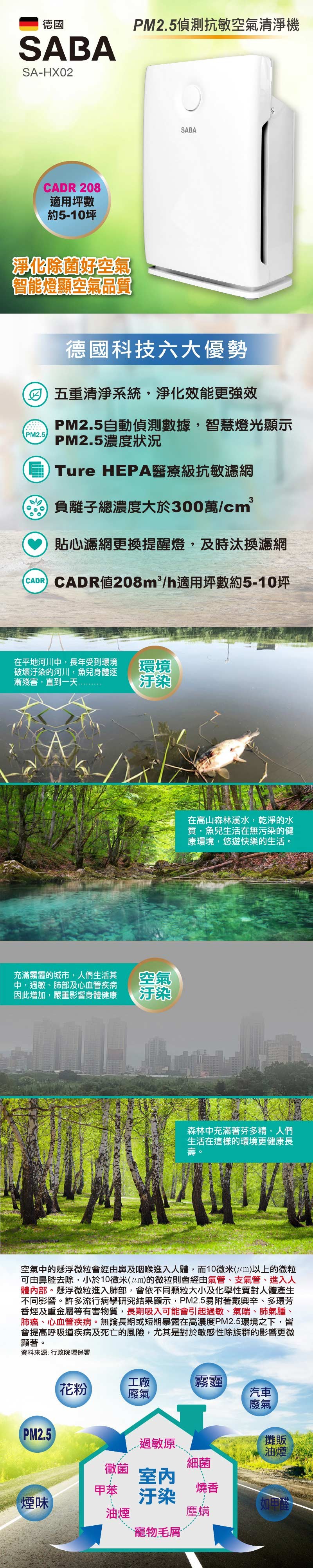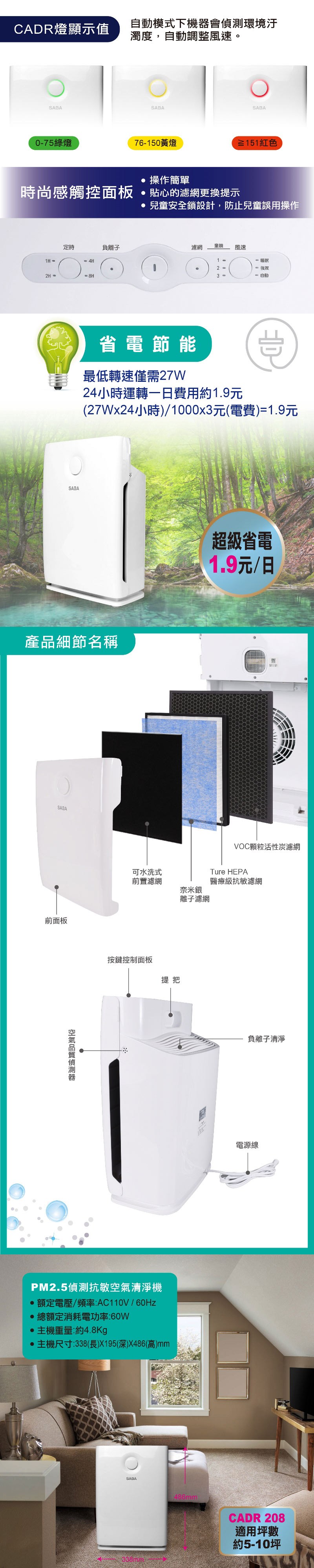 SABA PM2.5偵測抗敏空氣清淨機 SA-HX02