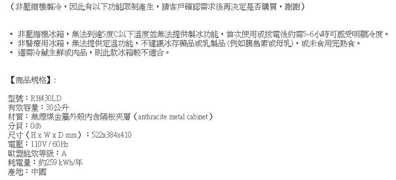 ★展示機出清!★(九號倉三樓) 瑞典 Dometic 30L RH430 吸收式製冷小冰箱 LD 無煙煤金屬外殼內含隔板夾層 低調奢華