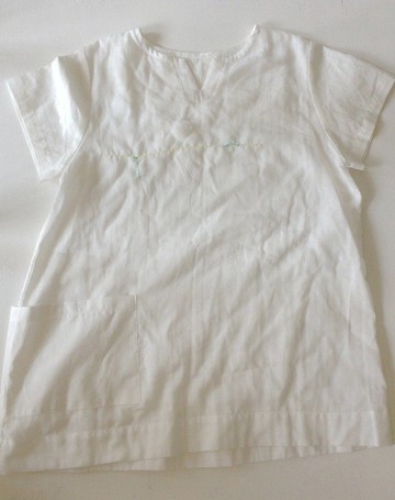 小時候常做關於"雲"的夢那曾經短暫的美夢--躺在雲裡的感覺總不時縈繞在心中也因此在最近有了這張新圖--在雲海裡這件v領大口袋衫配這張圖可說再適合不過了長長淺黃色線條一朵棉花一個躺在雲裡小孩線條讓人可安然入睡尤其是盛夏的午后!材質:米白棉布 白色雙層紗布尺寸:衣長:67.5cm肩寬:40cm袖長:16cm胸圍:102cm(全圍)下襬:128cm(全圍)袖龍(腋下):46cm(全圍)產地/製造方式台灣