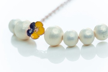 ♥♥♥♥♥ **材質說明** ♥♥♥♥♥珍珠色澤:純白色 珍珠尺寸:6mm、8mm、10mm 全長:460mm配件材質:925純銀鍍18K金(高質感抗敏材質)♥♥♥♥♥ **設計概念** ♥♥♥♥♥夏日黃花系列藍紫色x鮮黃色的強列對比白色棉珍珠搭配出氣質中帶點俏皮的感覺以及垂墜8mm的棉珍珠於您的美背上更顯優雅。♥♥♥♥♥ **關於棉花珍珠** (以下稱Cotton Pearl) ♥♥♥♥♥Cotton Pearl是由日本研發的珍珠,材質由棉花壓製而成,堅固不易變形,外表光澤亮麗且重量比一般珍珠輕盈,於配戴時幾乎感覺不出Cotton Pearl的重量。Cotton pearl飾品的搭配亦可年輕或高貴,出席重要場合或是casual的隨意穿搭都可以顯現出飾品的存在感,希望每個人都能在設計中找到屬於自己的搭配。♥♥♥♥♥ **購買前的小叮嚀** ♥♥♥♥♥我們的飾品一直以來, 努力著希望能顛覆早期傳統所謂的[重]就是[貴]的舊觀念,讓女性的朋友們更能夠[輕鬆地]配戴自己所喜愛的飾品而不致於疲倦,並且希望強調我們的飾品與淡水珍珠不同, 棉花珍珠是由日本國產棉花經過當地[特殊壓縮], 才能製作完成,目前也[只有日本]有生產棉花珍珠的技術, 它表面猶如絲蛹般的紋路, 卻又帶著珍珠般的光澤, 更加特別與讓人喜愛.所以我們要再三地強調, 棉花珍珠並不是淡水珍珠, 但它卻比淡水珍珠更加的俱有質感與特色.首先我們再一次希望關注我們飾品的朋友們, 能夠在[購買前], 先能了解我們棉花珍珠與一般珍珠的不同,希望能在您喜愛它的[輕盈]與[設計師的設計]為前提下, 再做購買,可以直接在Pinkoi下單購買後, 由我們[免費提供7天鑑賞期]給您做體驗,我們希望您購買後, 拿著實品的心情是開心愉悅的, 進而讓更多人喜愛Miss Mos[輕盈]的飾品設計,這才是我們Miss Mos最大的成就與宗旨.也謝謝您提供不同的建議給Miss Mos 讓我們更加努力的讓大家知道棉花珍珠的獨特之處吧^^。♥♥♥♥♥ **產地/製造方式** ♥♥♥♥♥棉珍珠產地: 日本設計發源: 台灣設計製作方式: 手工製作
