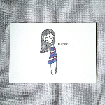 女孩拉著小象車車【1973-Belle&Boo復古卡片 多用途】