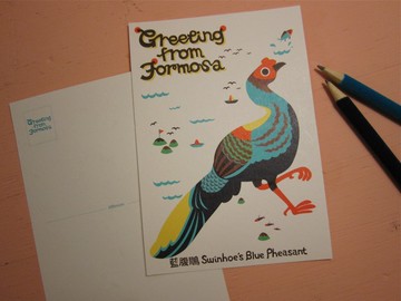 版印明信片:Greeting from Formosa台灣特有種生物明信片-藍腹鷴