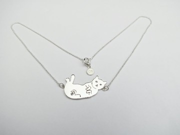 **提醒!**寄送香港、中國並非使用順豐運送,請勿填寫順豐站地址,請提供有人可以簽收的收件地址,謝謝。**【項鍊說明及故事】**貓咪愛撒嬌向你露肚肚,快點來陪我!手工鏤空線條設計與製作**【尺寸、長度】**貓咪大小約 3.2 x 2.2 cm項鍊長度為有16吋、18吋可以選擇**【材質】**925純銀**【包裝盒】**https://www.cpercent.com.tw/images/package01.JPG優雅純白色的盒子,燙金C%品牌LOGO,搭配鵝黃色燙金品牌名稱緞帶,整體呈現清新優雅的高級精緻感。附贈:**拭銀布一片****透明夾鍊袋一個****保養說明卡一只****【使用及保養方式】**925純銀:不佩戴時請用拭銀布擦拭後**放進拉鍊袋裡**隔絕空氣!氧化為正常現象,可用拭銀布擦拭氧化部分,如無法保養請與我聯絡或送給專業的人士 (拭銀布黑了為正常現象,請勿用水清洗)*純銀商品請勿配戴著去泡溫泉。**【產地/製造方式】**台灣C%手工製作https://www.cpercent.com.tw/uploads/ad/Pinkoi_banner-min.jpg