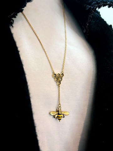 手工繪製琺瑯蜜蜂與蜂巢 Brass 項鍊。提供兩種配色選擇。