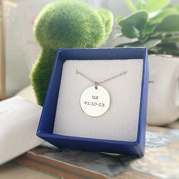 已含一面的雷射刻字費用字型選擇https://c1.staticflickr.com/9/8595/28705868021_b03eed8bee_o.jpg中英文皆可大概8-12個字母以內包含符號 和 空格當然字愈多, 會愈小愈看不清楚字體請先訊息艾迪以作確認**下單備註示範**:我要刻優雅風英文字體(寫上要刻的文字)如果要多刻背面請加購以下連結https://www.pinkoi.com/product/1T0JKCDs?category=7可以來手寫圖訂製 (如圖) , 只限簡單線條, 請先訊息我們溝通https://c1.staticflickr.com/3/2896/33750012945_68e773ffa2_b.jpg是送 男朋友 女朋友 閨密 禮物首選 適合情人節 紀念日 生日 聖誕節交換禮物 結婚小物 送禮用**材質說明**925純銀**尺寸**圓牌2公分直徑**包裝內容物**1.銀拭布 (第一次購買/送禮用訂單)2.珠寶用夾鏈袋3.保養說明書https://c2.staticflickr.com/2/1904/43410808330_febf534e8f.jpg為了支持環保, 避免浪費資源下單時在"備註"列明 **支持環保, 簡約包裝**(非盒子) 的客户會得到**折扣優惠劵**供 下次 在本小店購物使用喔^^如果訂製多於一項同類的訂單會放於同一個盒子內除非另外特別要求 e.g. 送禮用途除了環保包裝外, 其他包裝都根據庫存挑選, 更換不另作通知https://c2.staticflickr.com/2/1920/31349075698_0e948414cd.jpg**保養方式**純銀保養注意事項 1.\t用拭銀布擦拭2.\t用後裝進密封袋裡隔離空氣 3.\t常配戴身上, 人體油脂可以滋養銀飾 4.\t太黑可以泡在濃稠牙膏水(高露潔)1-3 天 + 牙刷擦拭 !\t泡溫泉時切勿佩戴 (含硫磺) !\t忌清潔劑 (酸性會腐蝕金屬) 純銀和蜡繩都可以泡水洗澡上水後擦乾就可以了如果氧化變暗了就用附送的銀拭布就可以擦回光亮唯一要避開泡溫泉而已P.S: 銀能測試毒有些人佩戴銀飾後它突變黑證明人體偏酸性自己就要注意作息,飲食,情緒https://c1.staticflickr.com/5/4834/46805894212_308ff4824f_c.jpg----------------------------------------------------------------------------------------------------------------https://c1.staticflickr.com/5/4448/37658583982_e9eab0e146_o.jpg設計師介紹黃艾迪- 生於香港,媽媽為台灣人。擅長多國語言,曾當全職模特兒、任職韓國企業空服員,培養出一定的美感和國際觀。2013年移居台灣後為實現藝術夢,一步一腳印提升成為金工銀匠。2015年創立同名品牌「IDYLLIC LOVE 愛艾迪」,憑一己之力成為PINKOI平台上受歡迎的個人銀飾品牌之一,客戶遍及亞洲和世界各地。剛考獲台灣國家「金銀珠寶飾品加工」乙級證照, 技術得到大大提升。下一個目標為設立個人半開放式工作室,希望一邊享受創作自由和客人交流,一邊透過網絡推廣品牌到更多更遠的地方。產地/製造方式台灣