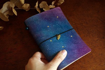 手染宇宙星空 手縫真皮 A5 A6 筆記本 書衣 書套