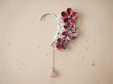 年末年始的優惠活動正在進行中!請把握這次機會,選購您喜愛的作品。這款耳骨夾採用古董和服布料,以粉色花紋的布料製成,散發出成熟可愛的氣息。非常適合搭配和服或浴衣,在賞花或參加花火大會時配戴。使用了正絹和服布料與蕾絲。垂墜部分使用了人造貓眼石,花蕊則使用了玻璃珍珠、人造貓眼石等素材。此為左耳專用。尺寸:長 10cm,寬 6cm花朵尺寸:大 3cm,中 2.8cm,小 2cm垂墜長度:4.5cm※第五張圖片為同款不同色系的配戴示範照。每一個作品皆為手工製作。能為收到作品的您帶來笑容,是我們最大的喜悅。**購買注意事項**・「Tsumami Zaiku」手工藝品非常精緻,請注意防潮、防壓,避免變形,並小心保管與運送。・由於您的電腦或裝置螢幕顯示差異,實際商品顏色可能略有不同。・恕不接受因顧客因素而提出的取消、退貨或換貨要求。 ※若收到瑕疵品,請於商品到貨後3天內透過電子郵件告知。・若於運送過程中發生遺失等問題,本賣場恕不負責,敬請見諒。*若有任何問題或需求,請隨時與我們聯繫。