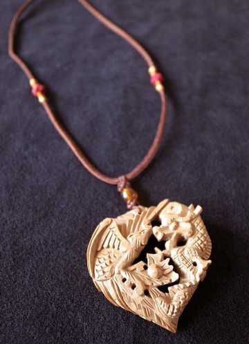 ㊣印度老山檀香木雕件項鍊---龍鳳