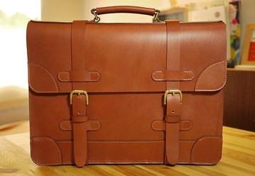 植鞣皮革商務公文包/鍍鎳黃銅配飾