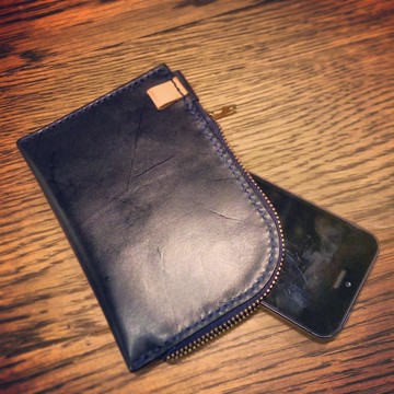 手染 皮革 藍色 黑色 卡套 卡夾 名片夾