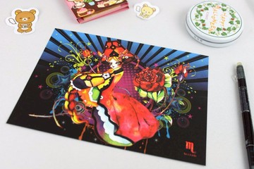 虎斑羊以星座創作一系列獨一無二的插畫設計以華麗為主軸,彷若派對般的視覺饗宴,女孩琵琶狀的尾部捲曲著姿態,勾引的眼神呈現天蠍得天獨厚的神祕與氣質。做為禮物或是生日賀卡等紀念馬克杯皆可。https://farm6.staticflickr.com/5697/22078908186_5046647297_b.jpg材質:高質感萊妮卡紙240磅尺寸:18x13cm內容物:單張無法對折明信片x1厚紙板(保護名信片用)x1牛皮紙信封x1裝飾貼紙-隨機附贈(黏信封用)x1塑膠袋(保護明信片)x1★可當生日卡/各式賀卡來使用精緻包裝,細心保護台灣設計創作100%