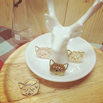 Oops 柯基頭銅片剪影戒指-聖誕禮物-
