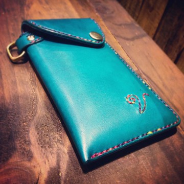 純手工製作手工染色皮革長夾附零錢包免費印字