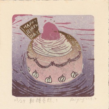 生日祝福可以不只是一張小卡一件小幅版畫作品更讓祝福加值「軟糖蛋糕(藍)」是版畫的原作作品,有藝術家限量號數及簽名使用凸版一版複刻技法,手工印刷層層疊印。此種技法在製作時需事先做好色彩計畫使用同一塊版子,印完一色後刻去一色的區塊再疊印另一個顏色並刻去另一個顏色的區塊重複數次,直到完成作品商品尺寸:紙張10公分X 10公分圖像7.3公分X 7.3公分商品材質:版畫紙、版畫油墨號數限量:29張寄送時將使用紙板增加厚度,避免在運送過程中受到折損。