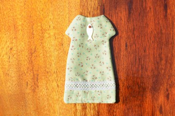 純粹的手感,綠碎花洋裝書籤看了一本令人感動的書,捨不得立刻讀完想要讓感動再延續就讓充滿溫暖手感的洋裝書籤幫你延續尺寸 / 長6.5CM、寬11CM材質 / 棉布 / 小魚釦