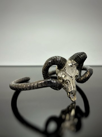 白銅公羊頭骨手鐲,提供 4 種配色選擇。