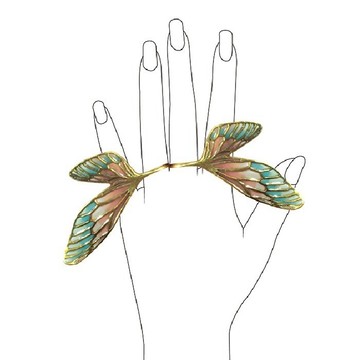雙仙女翼黃銅戒指,帶立式玻璃琺瑯粉彩