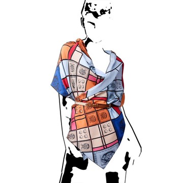 100公分見方・100%蠶絲・夥伴圖案・大尺寸絲巾 ChristalART