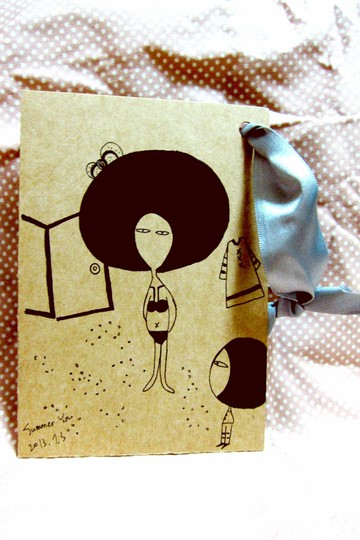 度過寒冷的冬天、忽冷忽熱的春天有沒有人對夏天情有獨鍾?夏天、沙灘、藍天碧海、比基尼女郎出發,迎接熱情的夏天尺寸=======================長:13cm寬:9cm銀色緞帶領結部分=======================長約7~9cm材質=======================牛皮厚紙卡內附丹迪紙信封=======================手繪製圖=======================用途:可當書籤或是萬用卡片使用=======================衝吧...海灘男孩女孩們!產地/製造方式台灣高雄
