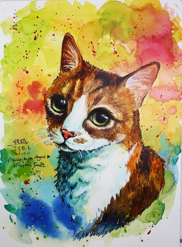 貓咪原創水彩、搞怪寵物肖像、小貓畫、手工水彩、原創水彩