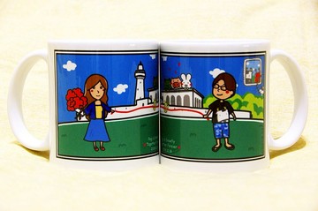 這是一款客製化的馬克杯**(因為是專屬的,所以喜歡的話請不要下訂唷!歡迎想客製的你們一起和mer.mer討論出一款專屬自己的杯子唷!!)**有四個好姊妹,各自有各自代表的動物,牛、豬、兔子、青蛙。現在,牛要結婚了!!! (這樣講好像哪裡怪怪的= =)所以其他三位好姊妹想要做一個特別的禮物送給她和她的另一半,希望他們可以一直恩恩愛愛,幸福快樂.背景是他們之前曾經去過的墾丁鵝鑾鼻燈塔,雖然不是在那裏求婚的,但是因為是個美好的回憶,所以我就把場景設定在那裏,兩人手拉著紅線,中間掛著求婚的那顆鑽戒!兩人共結連理,互訂終生~訂做杯子的那三個好姊妹,各自以各自代表的動物出現在圖中,豬、兔子、青蛙都偷偷的躲在房子上面偷看這幸福的一幕,默默的祝福他們~她們說,女主角很愛寫明信片,所以我把這整張圖當作一張明信片,在右上角貼上了郵票,而郵票裡就是女主角的代表動物-牛,和男主角的代表動物-螃蟹。然後...蓋上了幸福的戳章。圖案的正中央下方簡單的寫上兩人的名字,日期和祝福-----"Together Forever"。希望這對新人能夠幸福長長久久,就像姊妹們對他們的祝福一樣,永遠都在一起。-----------------------------------------------------------------------------------你/妳也想要客製化一個屬於自己的馬克杯嗎?快傳訊息跟mer.mer討論吧!!產地/製造方式台灣