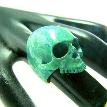 古銅手繪畫中的古銅色骷髏戒指,綠色古色,搖桿珠寶,骷髏珠寶,騎自行車的人珠寶