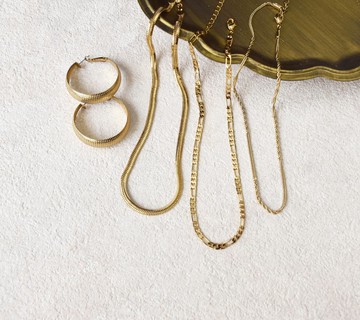 (1)黃銅花式繩結短項鍊NT:590(2)黃銅鏤空短項鍊NT:690(3)歐美時尚蛇骨短項鍊NT:890(4)復古格紋寬版耳環NT:690**[商品材質]Product Materials**(1)黃銅電鍍古金色,抗過敏材質(2)抗過敏不鏽鋼針**[商品說明]Product Descriptions**(1)黃銅花式繩結短鏈:38cm+5cm延長鏈(2)黃銅鏤空短項鍊:38cm+5cm延長鏈(3)歐美時尚蛇骨短項鍊:40cm+5cm延長鏈/寬度0.2cm(4)復古格紋寬版耳環:3.5cm/寬度1.2cm**變更長度,製作時間約10天****如有特殊長度需求,歡迎詢問設計師**若有禮品包裝需求,歡迎加購https://www.pinkoi.com/product/nC8B8wwA歐美時尚蛇骨短項鍊其他混搭參考:1.[歐美時尚耳環項鍊套組 -蛇骨鍊款]:https://www.pinkoi.com/product/8wd4hAA92.[歐美時尚耳環項鍊套組-寬版耳環組]:https://www.pinkoi.com/product/TjREKQfZ[復古格紋寬版耳環]賣場連結:https://www.pinkoi.com/product/kZ6DVYg3[黃銅花式繩結短項鍊]賣場連結:https://www.pinkoi.com/product/DtFAnyv2[歐美時尚蛇骨短項鍊]賣場連結:https://www.pinkoi.com/product/cfnf5Zkh**[鍍金飾品保養與注意事項]**(1)請勿讓飾品接觸到任何酒精溶劑,例如香水或是造型噴霧。(2)若要使用香水,請在噴完後數分鐘再戴上飾品,因為香水揮發的化學物質殘留在飾品上容易加速氧化。(3)請盡量避免戴著洗澡,會使得鍍金飾品加速褪色。(4)擦上保養品後,請確認已被皮膚吸收,才戴上飾品。(5)避免接觸溶劑、去光水、油脂、氯等物質,這些化學物質容易使首飾的鍍金層斑駁脫落褪色。(6)請盡量避免接觸香水、保養品,它們容易使鍍金飾品褪色及失去光澤。(7)台灣氣候多變潮濕,也會影響飾品的保存,建議將每一件飾品個別收納好,放置於夾鍊袋或飾品盒中,可避免因材質、顏色不同而相互碰撞磨損。**[保養方式]**(1)棉花棒+清水+布佩戴後以清水洗掉飾品表面的汗水或空氣中的雜質,再以質地較軟的乾布拭乾,輔以棉花棒擦拭細微之處。請以輕柔方式擦拭,以避免留下刮痕。(2)牙膏在飾品乾燥的情況下,將牙膏擠在軟毛刷上,再塗抹於飾品上(若飾品鑲嵌寶石,則需避開)。請選擇無磨砂顆粒的牙膏,以避免傷害飾品表面。靜置15分鐘(若飾品氧化程度嚴重則可拉長靜置時間至30分鐘),最後以清水洗淨以免牙膏殘留,再以軟布拭乾或吹風機冷風吹乾。(3)拭金布拭金布兩面皆可使用,若擦到兩面發黑就可更換一張新的(請勿用水清洗拭金布)擦拭包金首飾時建議輕輕拭抹,不宜過度用力,而鍍金飾品則不宜使用這個方法,因拭金布可是會磨損鍍金薄層。(4)洗金水將飾品浸泡洗金水約3~5秒,再以清水沖洗,最後以乾的軟布輕輕擦拭至乾燥。若飾品上有寶石或珍珠,則可用小刷子沾洗金水,輕輕塗抹在包金部分,最後以清水洗淨,再以柔軟乾布拭乾,這樣便可避免鑲嵌的寶石受到侵蝕。**[維修與售後服務]**【飾品維修服務】1.所有售出商品皆享有免費維修與保養服務,歡迎與我們聯繫。2.為了維護服務品質,維修商品僅限paradisebird所售出之商品,恕不接受購於其他店家的飾品。【維修注意事項】1.部分商品可能因缺件無法維修,請事先來電客服說明維修狀況,並提供維修飾品之照片以便判斷,是否可以維修及費用待收到商品後報價為準。2.維修件必須自行負責來回運費。3.商品維修時間約為2週,收到商品後客服會確認實際維修時間。4.網路商品購買有七日鑑賞期,若商品在七日之內有損壞,我們也可以免費為您更換全新商品。5.維修是指將損毀處盡量修復為可使用狀態,並非回復於全新狀況,故會有維修痕跡,請確認是否能夠接受後再行維修。**【送件地址】**地址:106 台北市忠孝東路4段295號3樓 天堂鳥手工飾品 商品維修部收