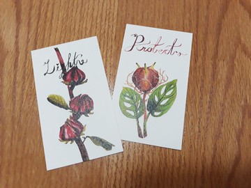 《心花怒放書籤》250磅進口義大利水彩紙7X12cm目前有兩個款式:◆A款:洛神葵◆B款:黑種草與窗孔龜背芋購買請註明款式喔^_^精緻唯美,送禮自用兩相宜。