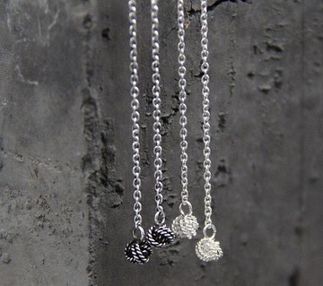 925 純銀手工針織球流蘇耳環長鏈耳線