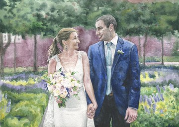 婚禮肖像定制原創水彩畫從照片家庭繪畫