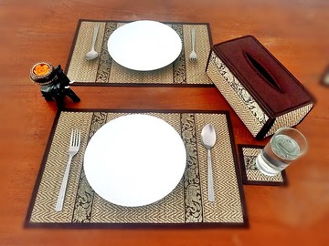 1 套包含 3 件,1 個餐墊、1 個杯墊和 1 個紙巾盒,由蘆葦草製成。OTOP手工藝品,由蘆葦編織而成,飾有人造絲,增添美感。易於擦拭乾淨餐墊,寬 30 厘米,長 46 厘米。杯墊寬度 x 長度:10 公分 x 10 公分。紙巾盒尺寸:寬13厘米,長26厘米,高10厘米。● 由於是手工製品,尺寸可能存在 1-2 公分差異。● 從不同的螢幕光線觀看角度來看,顏色可能會略有失真。