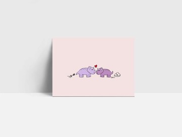 牛牛粉紅明信片